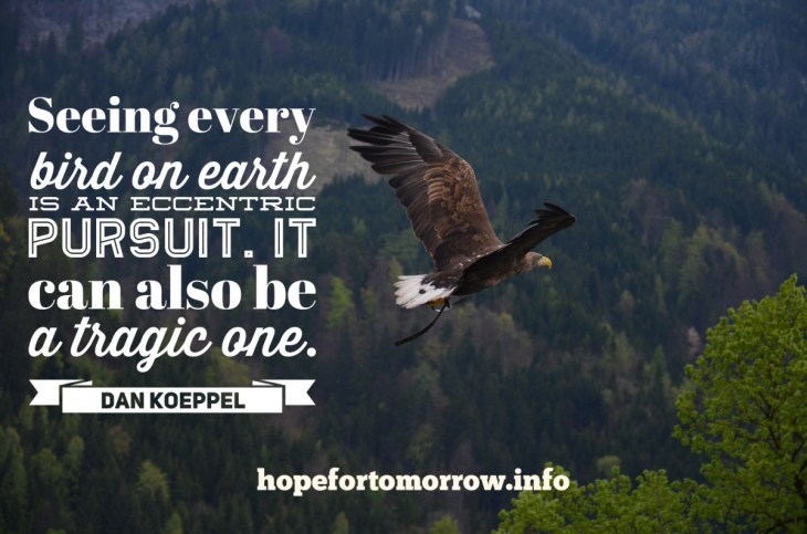 Richard Koeppel had a lifelong obsession to see every bird on earth. It began at the age of eleven in Queens, New York, when he first spotted a Brown Thrasher and jotted down the sighting in a notebook. Seeing every bird on earth is an eccentric pursuit and requires a specific mindset: singular, focused and obsessed, often at the expense of everything else. It entails considerable financial outlay. It also cost Richard Koeppel his marriage, jeopardised his relationship with his son, and disrupted his medical career.