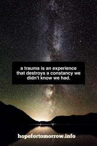 In other words, “Trauma… destroys a constancy we didn’t know we had.”