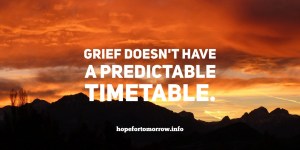 Grief is like a roller coaster. There will be ups and downs. You will have good days and bad days. Grief doesn’t have a predictable timetable. Years later you may feel a surge of grief. In grief, you never get off the ride.