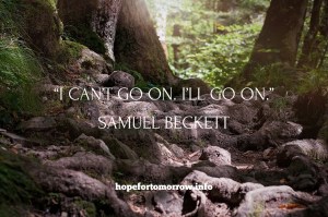 “I woke up in pain, facing another day – no project beyond breakfast seemed tenable. I can’t go on, I thought, and immediately, its antiphon responded, completing Samuel Beckett’s seven words, words I had learned long ago as an undergraduate: I’ll go on. I got out of bed and took a step forward, repeating the phrase over and over: “I can’t go on. I’ll go on.”