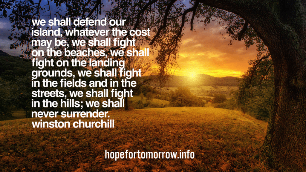 “We shall fight on the beaches, we shall fight on the landing grounds, we shall fight in the fields and in the streets, we shall fight in the hills; we shall never surrender.”