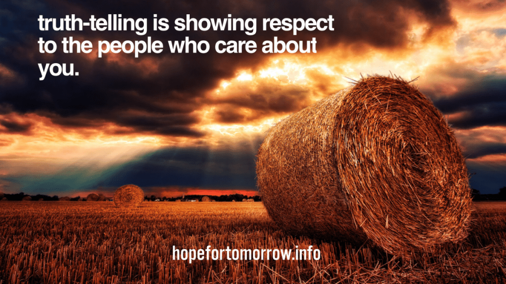 In times of crisis, truth is paramount. Truth-telling is being authentic. Truth-telling is showing respect to the people who care about you. It is an invitation for them to get involved and provide the support required.