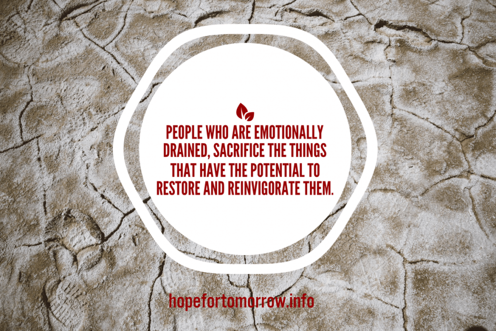 Tragically, people who are emotionally drained sacrifice the things that have the potential to restore and reinvigorate them.