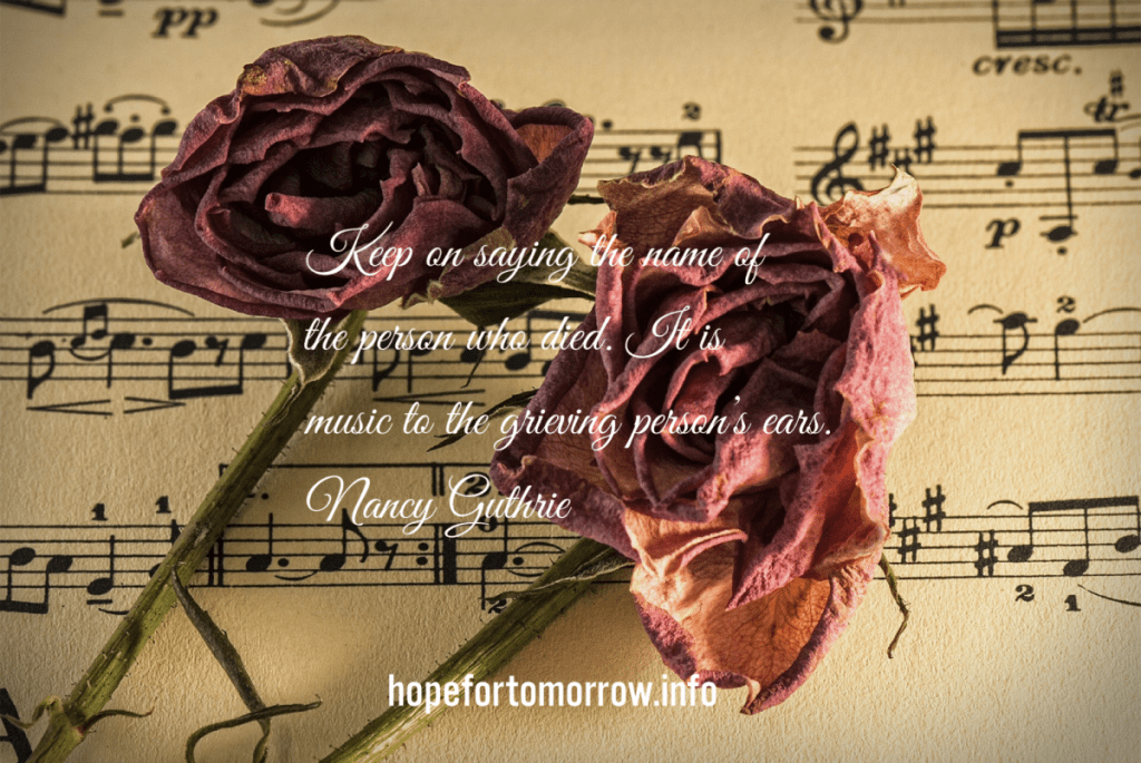 “Keep on saying the name of the person who died. It is music to the grieving person’s ears.”