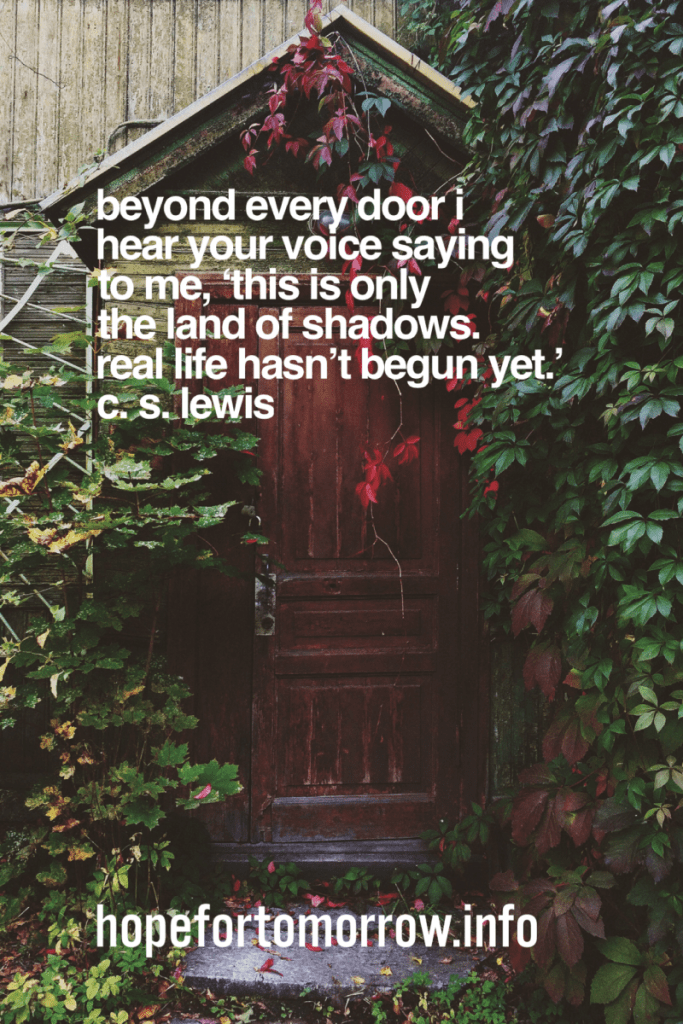 “Beyond every door I hear your voice saying to me, ‘This is only the land of shadows. Real life hasn’t begun yet.’”