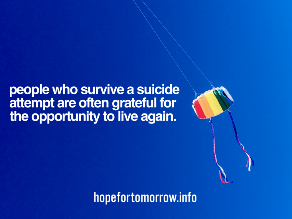 • People who survive a suicide attempt are often grateful for the opportunity to live again.