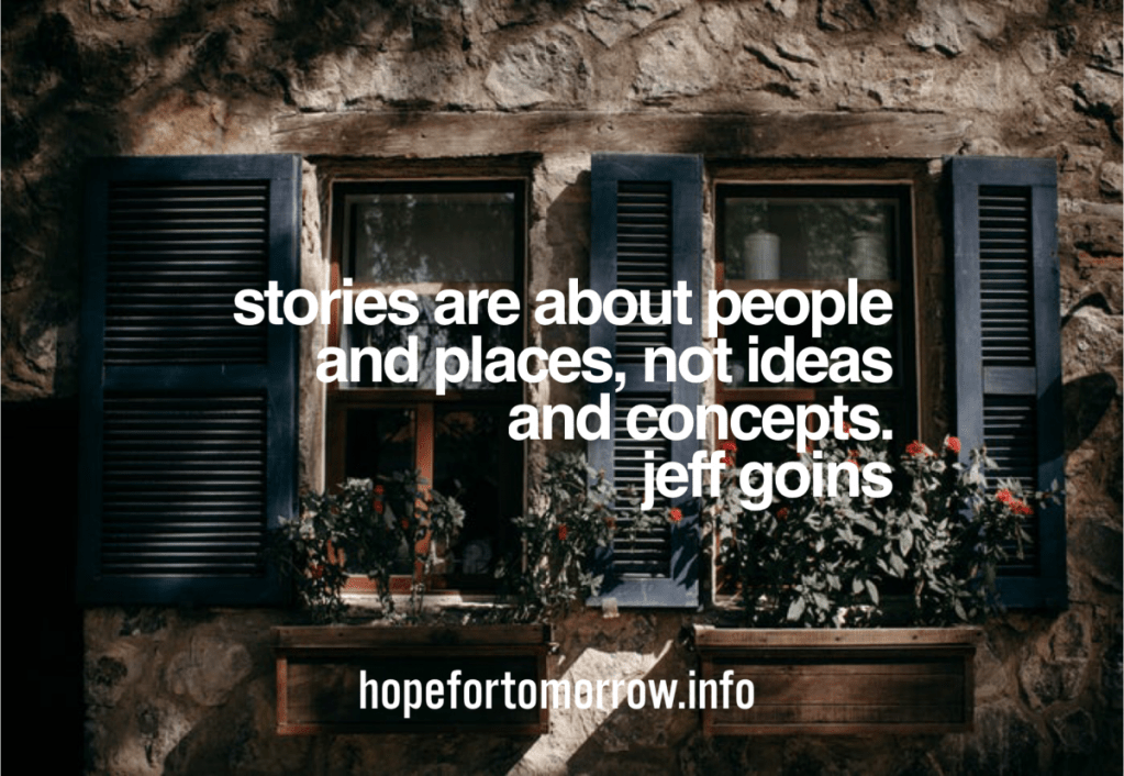 “Stories are about people and places, not ideas and concepts.”
