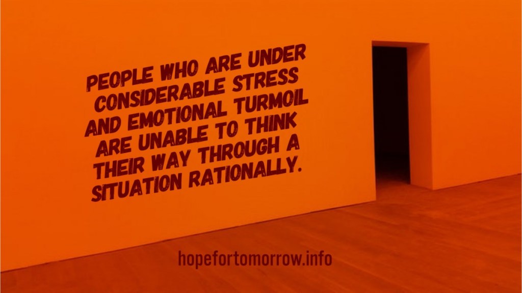 It illustrates the point we are making, that people who are under considerable stress and emotional turmoil are unable to think their way through a situation rationally. Their mind is in overdrive. Their thoughts unhinged.