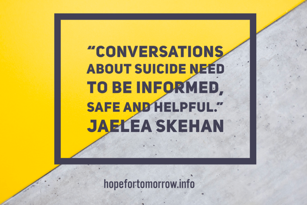 Jaelea Skehan is a respected leader in the prevention of mental illness and the prevention of suicide. She says,