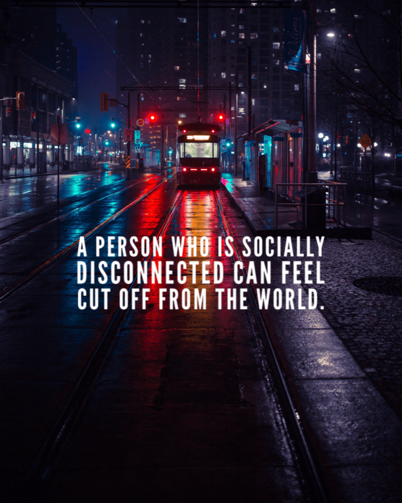 Feeling lonely is a normal human emotion. Social isolation is different. A person who is socially disconnected can feel cut off from the world. When we feel like this for long periods it can be damaging to our health.
