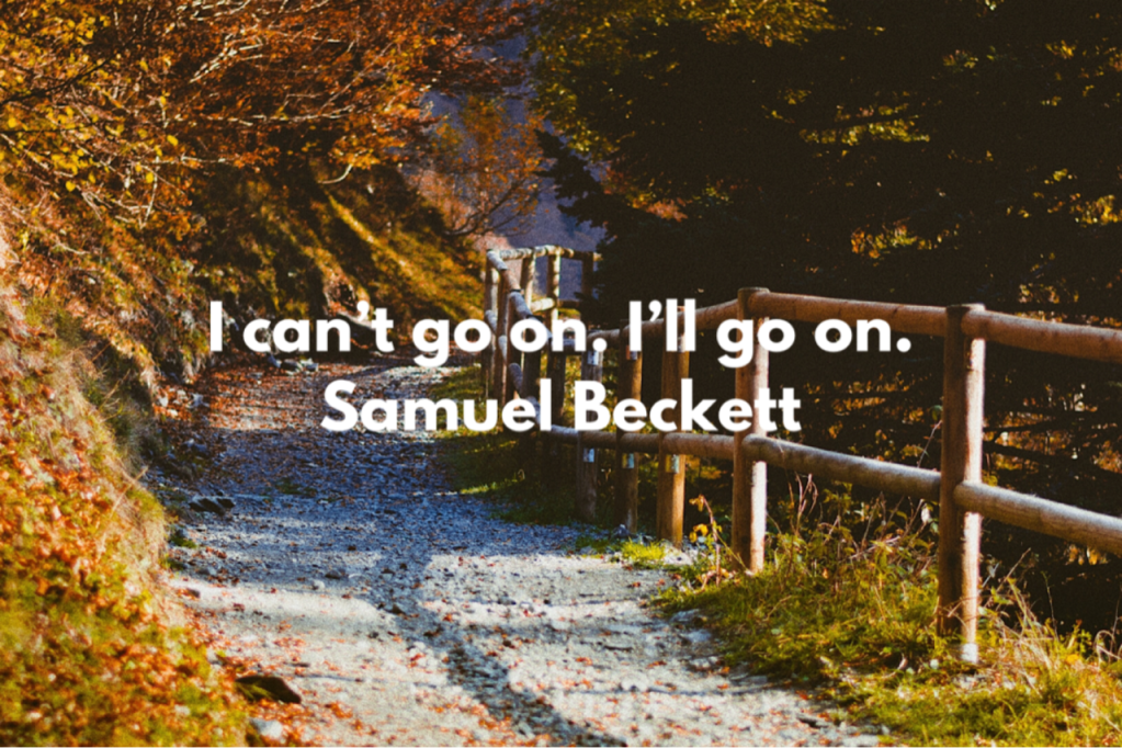 “I woke up in pain, facing another day – no project beyond breakfast seemed tenable. ‘I can’t go on,’ I thought, and immediately, its antiphon responded, completing Samuel Beckett’s seven words, words I had learned long ago as an undergraduate: ‘I’LL GO ON.’ I got out of bed and took a step forward, repeating the phrase over and over: ‘I can’t go on. I’ll go on.’”