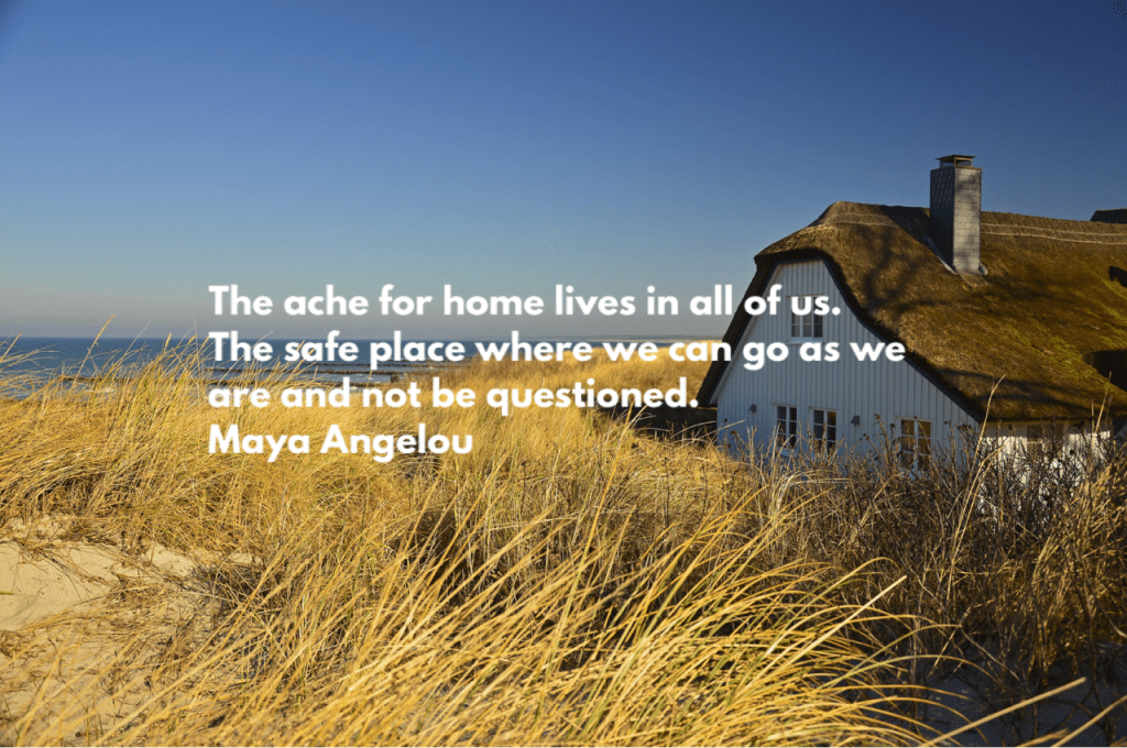 ‘The ache for home lives in all of us. The safe place where we can go as we are and not be questioned.’ Maya Angelou (author)