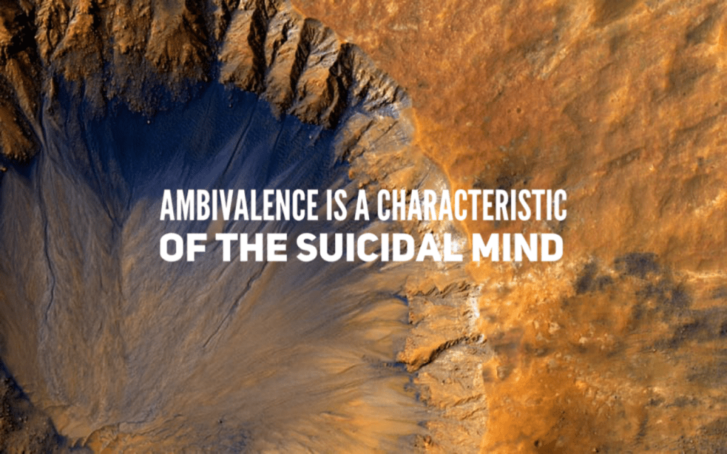 Ambivalence is a characteristic of the suicidal mind. A person at risk can have reasons for living and reasons for dying simultaneously. Most suicidal people do not want to die; they want the pain to stop.