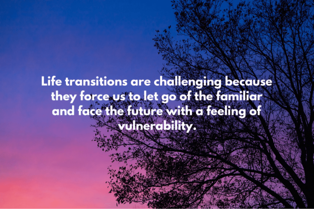 It was a difficult transition. Life transitions are challenging because they force us to let go of the familiar and face the future with a feeling of vulnerability.