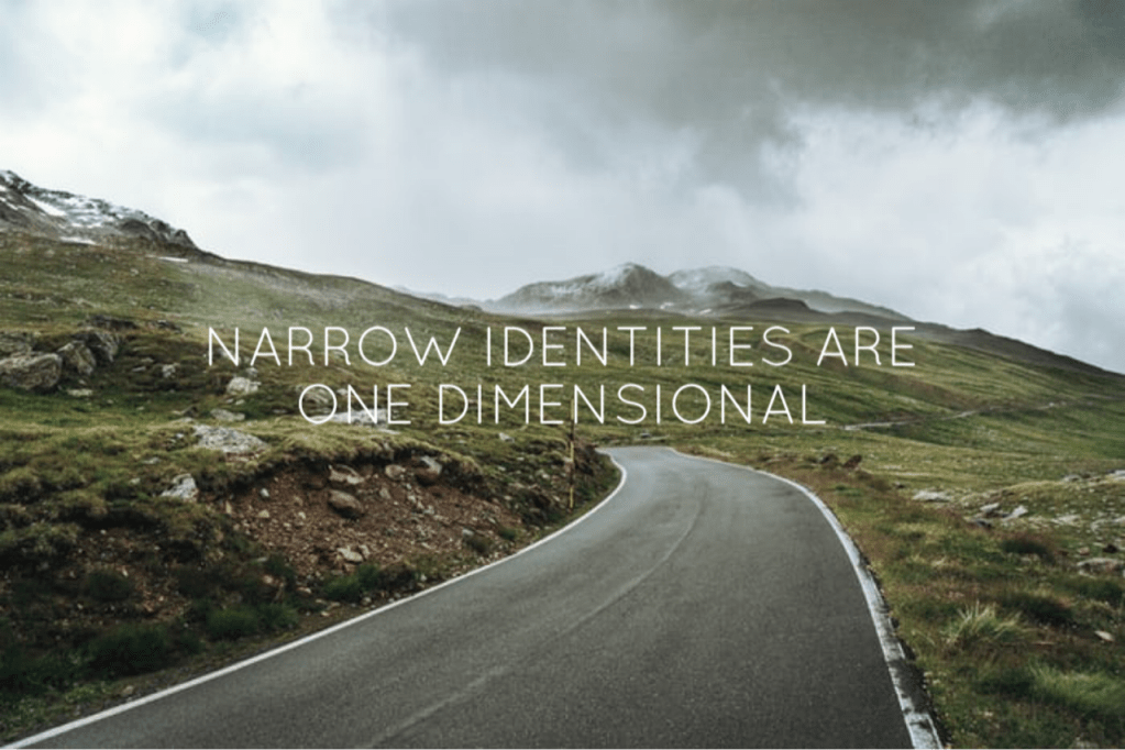 Narrow identities are one dimensional. They narrow our focus and are, by nature, exclusive. We may rationalize their value and defend their importance, but there is a downside.