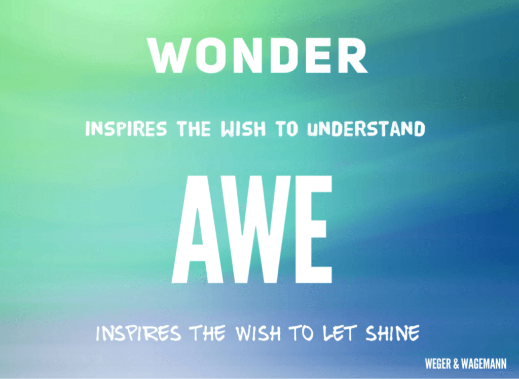 Awe and wonder are essential to the human experience. Although they are often used interchangeably, they are not the same. Researchers Ulrich Weger and Johannes Wagemann explain it like this. They write, “Wonder inspires the wish to understand; awe inspires the wish to let shine, to acknowledge and to unite. When feeling awe, we tend to simply stand back and observe, “to provide a stage for the phenomenon to shine.”