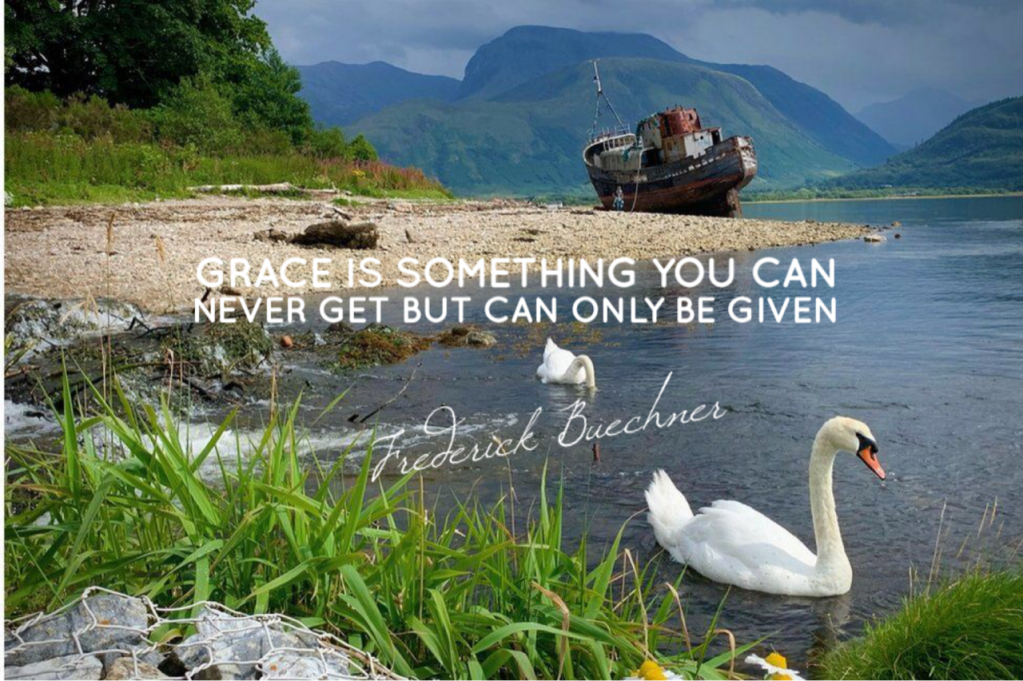 “Grace is something you can never get but can only be given. There’s no way to earn it or deserve it or bring it about any more than you can deserve the taste of raspberries and cream or earn good looks.“