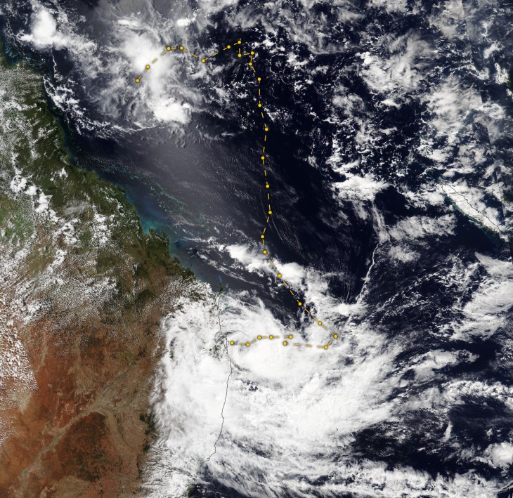 Tropical Cyclone Alfred tracked south and southeast, meandering slowly off the coast for almost a fortnight, fed by warm waters in the Coral Sea.