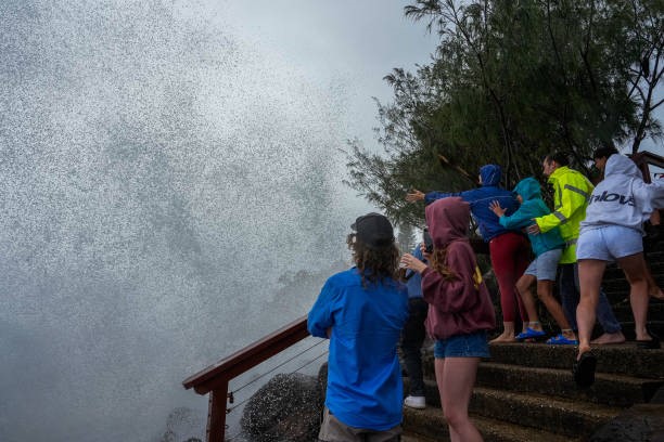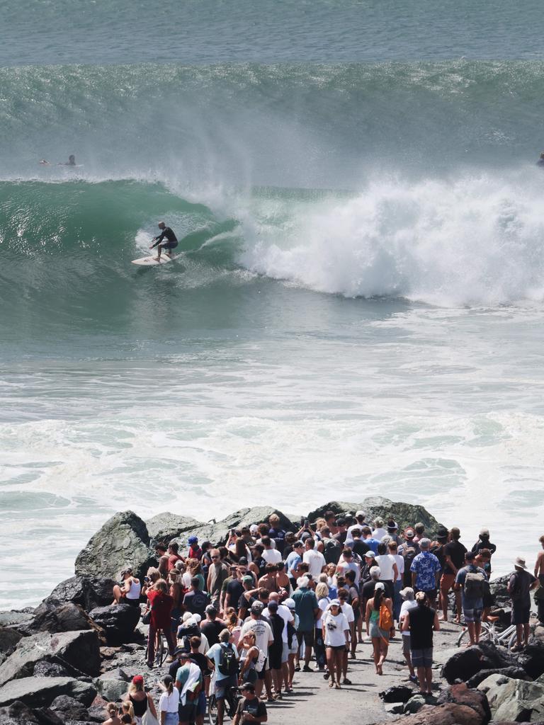 Storm tourists defied road closures and flocked to vantage points like the Gold Coast Spit rock wall to witness the ferocity of wild swells whipped up by Cyclone Alfred, despite winds gusting up to 80km/h. Some might consider their actions foolish, but they were desperate for that ‘cyclone selfie.’