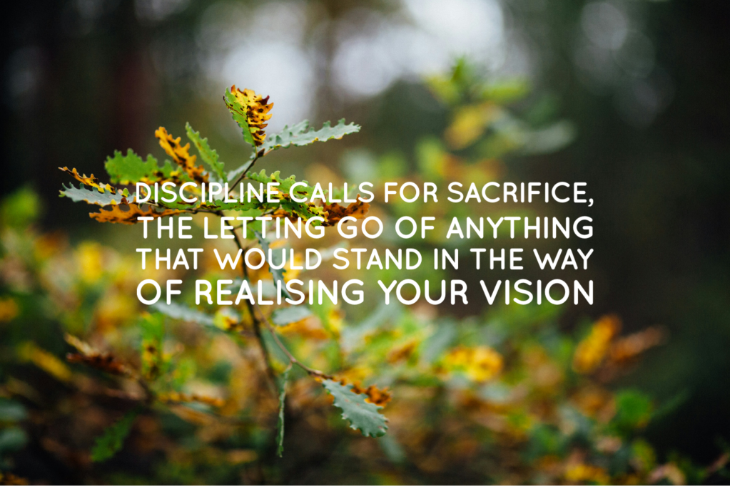 Discipline calls for sacrifice, the letting go of anything that would stand in the way of realising your vision. Discipline asks the question, ‘What will it take?’ It is the willingness to embrace the daily grind of turning up and doing what needs to be done.